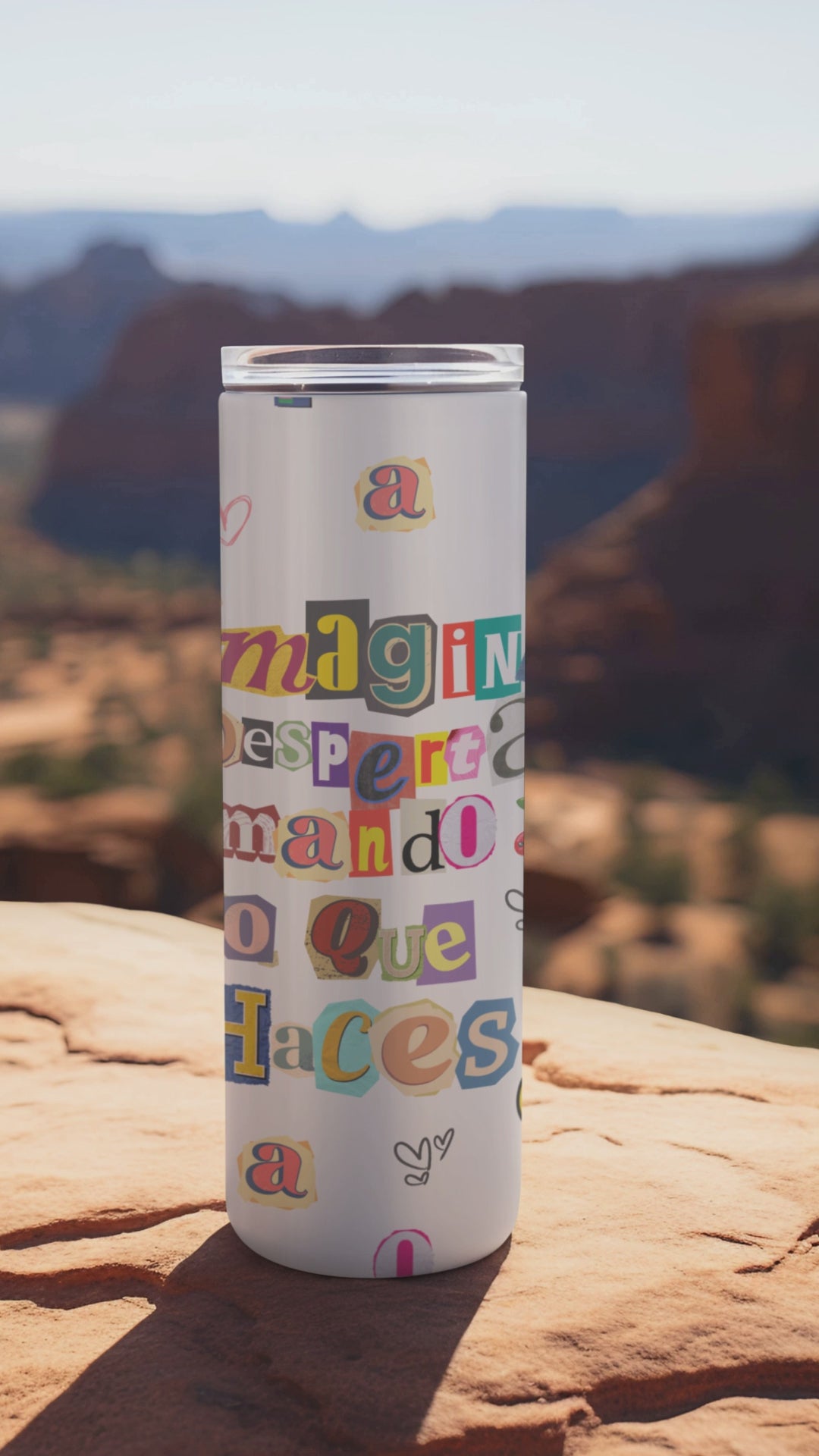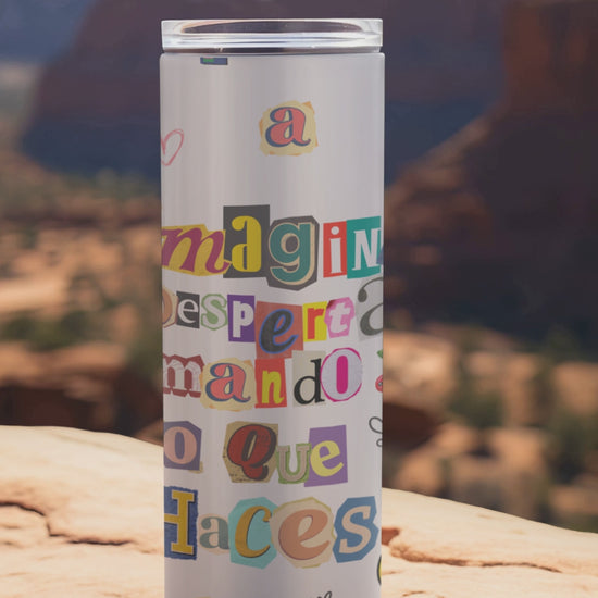 "Imagina despertar amando lo que haces" ✨ Our 20oz sublimation tumbler features the vibrant “Imagine waking up loving what you do” retro design, perfect for dreamers and doers. Made with durable stainless steel, it keeps drinks hot or cold for hours. Comes with a reusable straw and cleaning brush for everyday convenience.