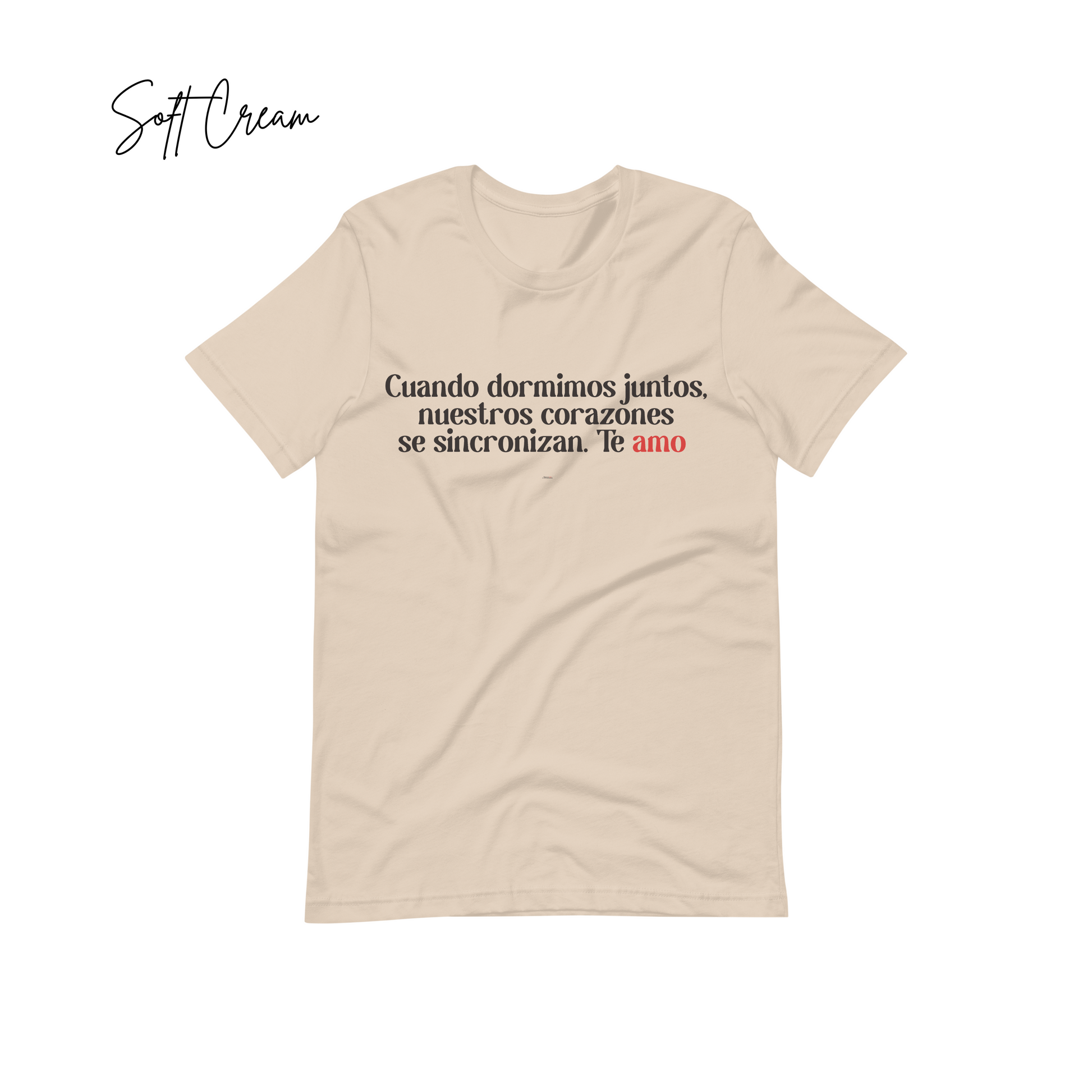 "Cuando dormimos juntos, nuestros corazones se sincronizan. Te amo" Positive Message Tees, Inspirational Shirt, Good Vibes T-shirt Gift, Positive Vibes Shirt