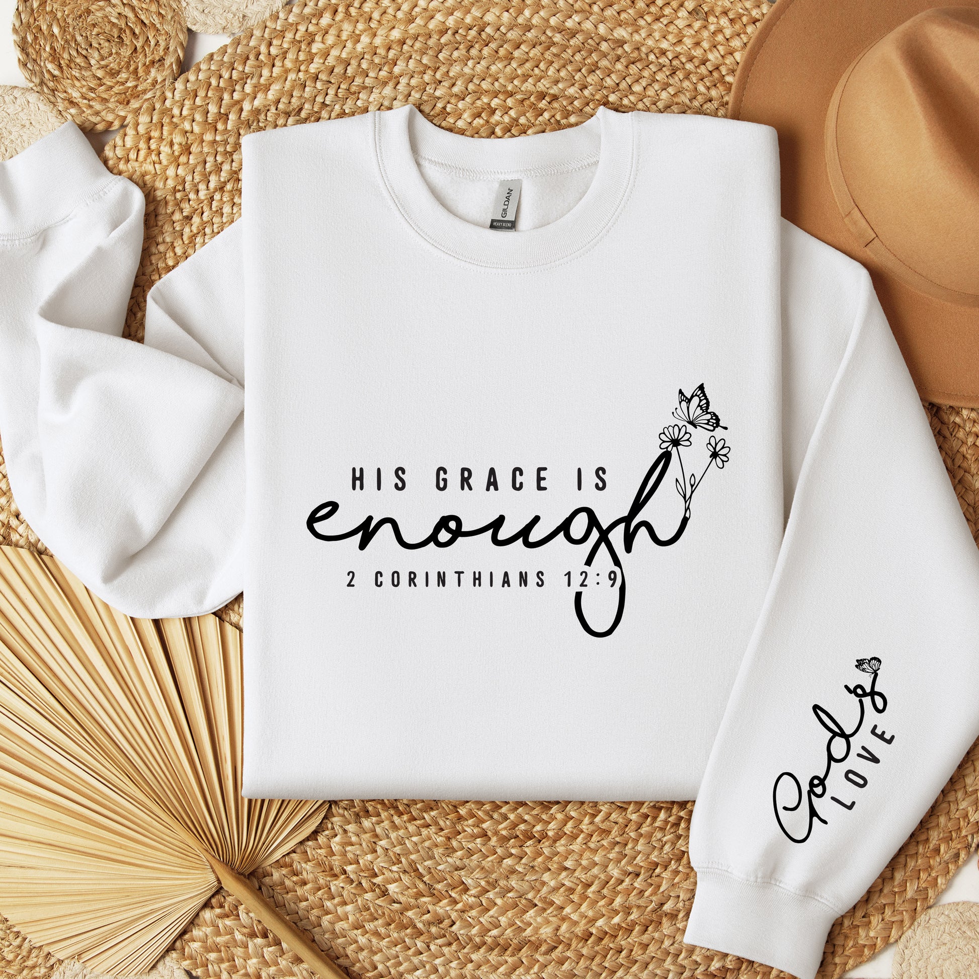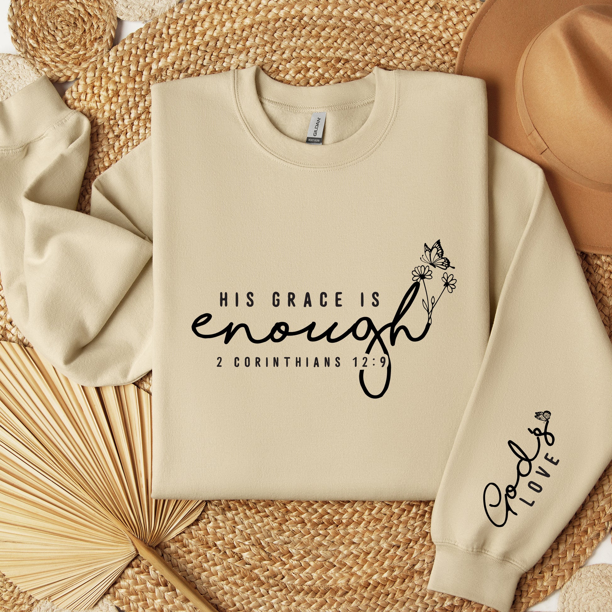His Grace is Enough Sweatshirt, 2 Corinthians 12:9, Christian Crewneck Pullover, Christian Gift, Easter Present, Jesus Bible Verse Sweater