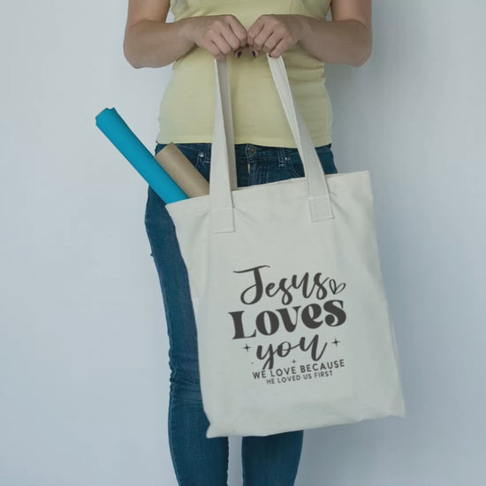 This Christian tote bag, featuring the message "Jesus Loves You," serves as a tangible reminder of the power of faith, perseverance, and following God's guidance. With its practical use and inspiring message, it is a versatile and motivating accessory for your daily journey.