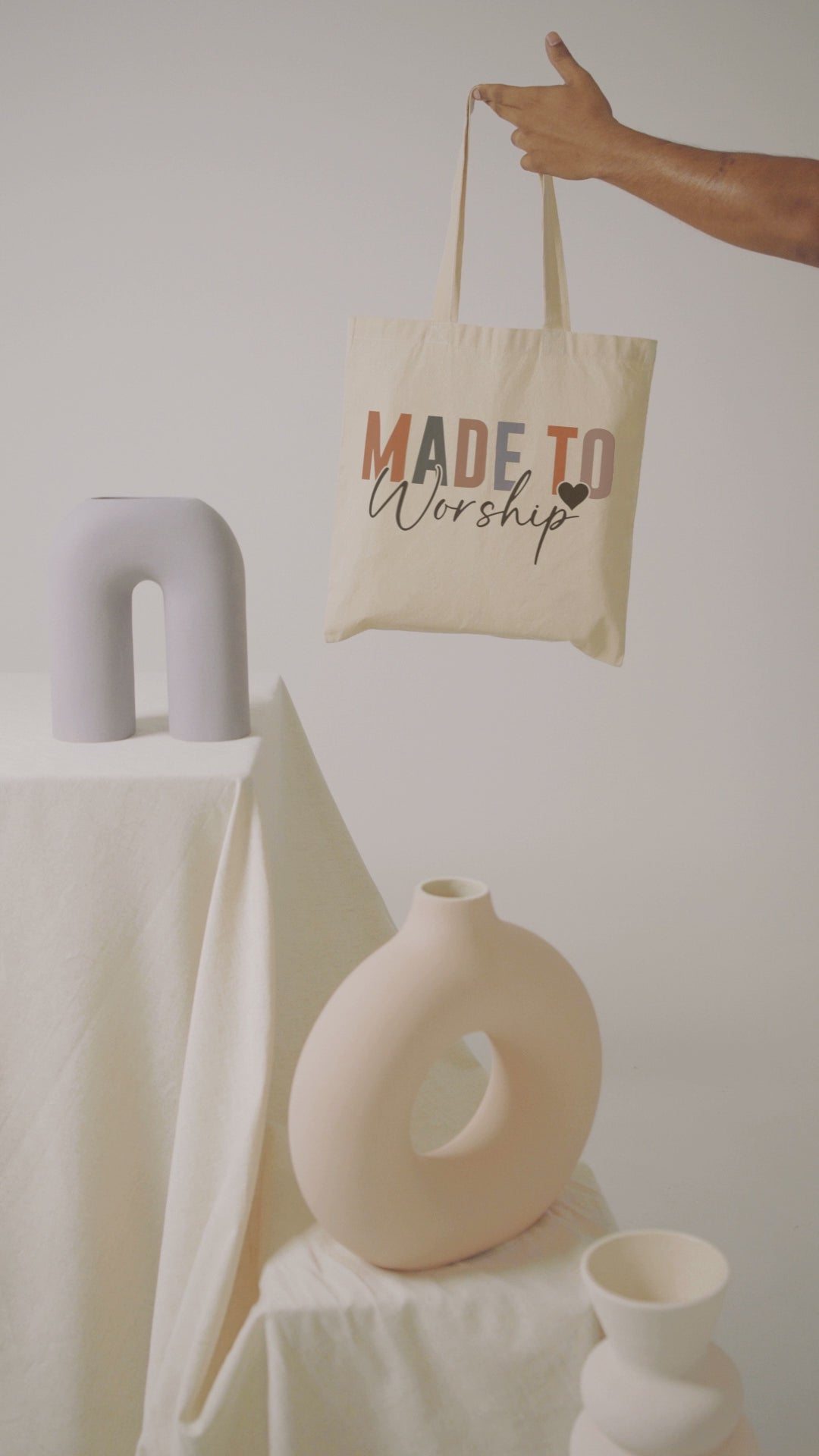 Made to Worship Tote Bag, Reusable Grocery and Shopping Bag, Custom Gift for Christians, Sustainable and Custom Gift Ideas