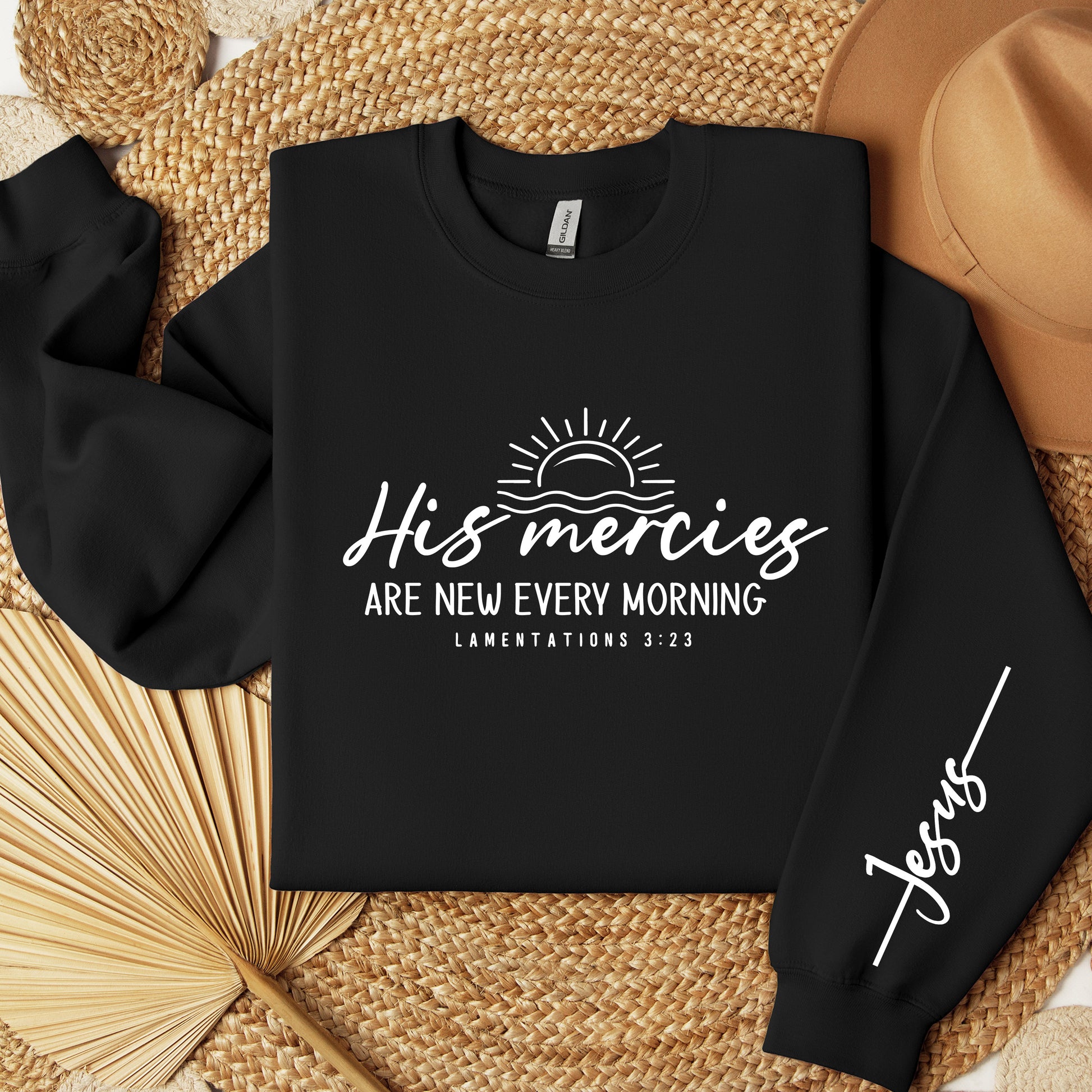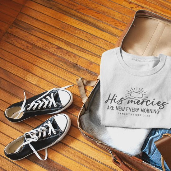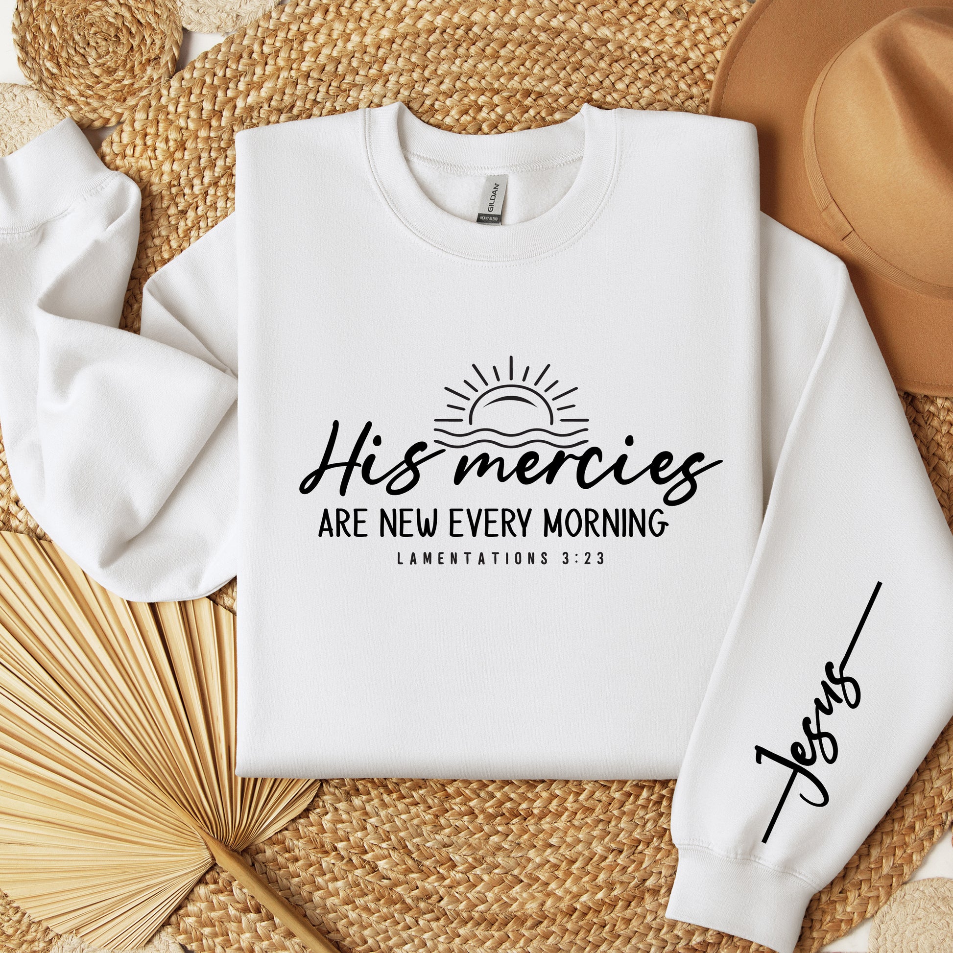 Ideal for those seeking to outwardly express their faith and devotion to Jesus Christ, this Christian sweatshirt is a fitting choice. Featuring the uplifting slogan "His mercies are new every morning" prominently printed on the front, this crew neck sweatshirt is both stylish and meaningful. Crafted from premium materials, it ensures durability and comfort, allowing you to wear it with confidence. Whether for yourself or as a thoughtful gift for someone who loves God and desires to convey their faith, this sweatshirt is sure to make a meaningful statement.