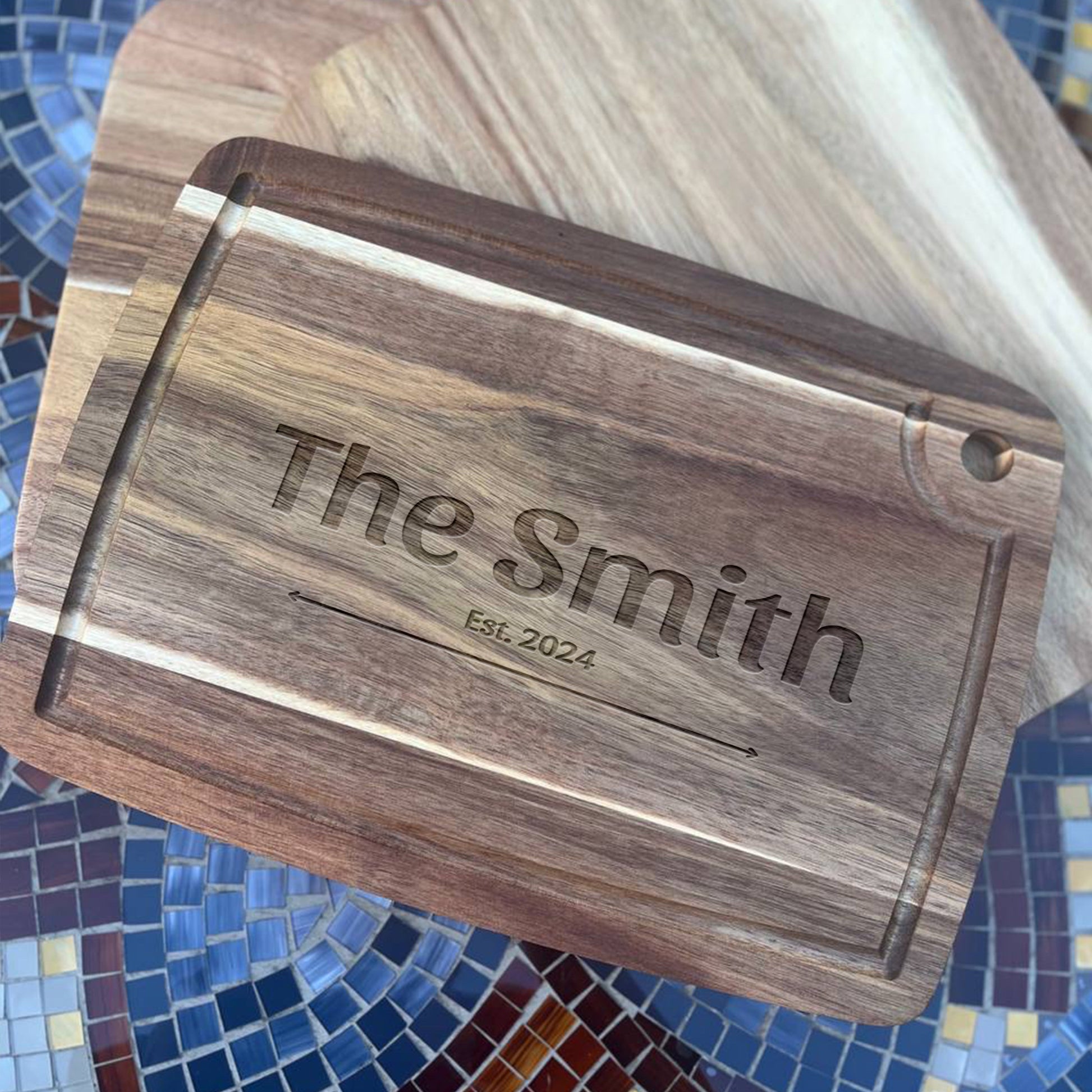 - Our cutting boards are engraved on one side permitting the use of the other side for cutting and chopping.