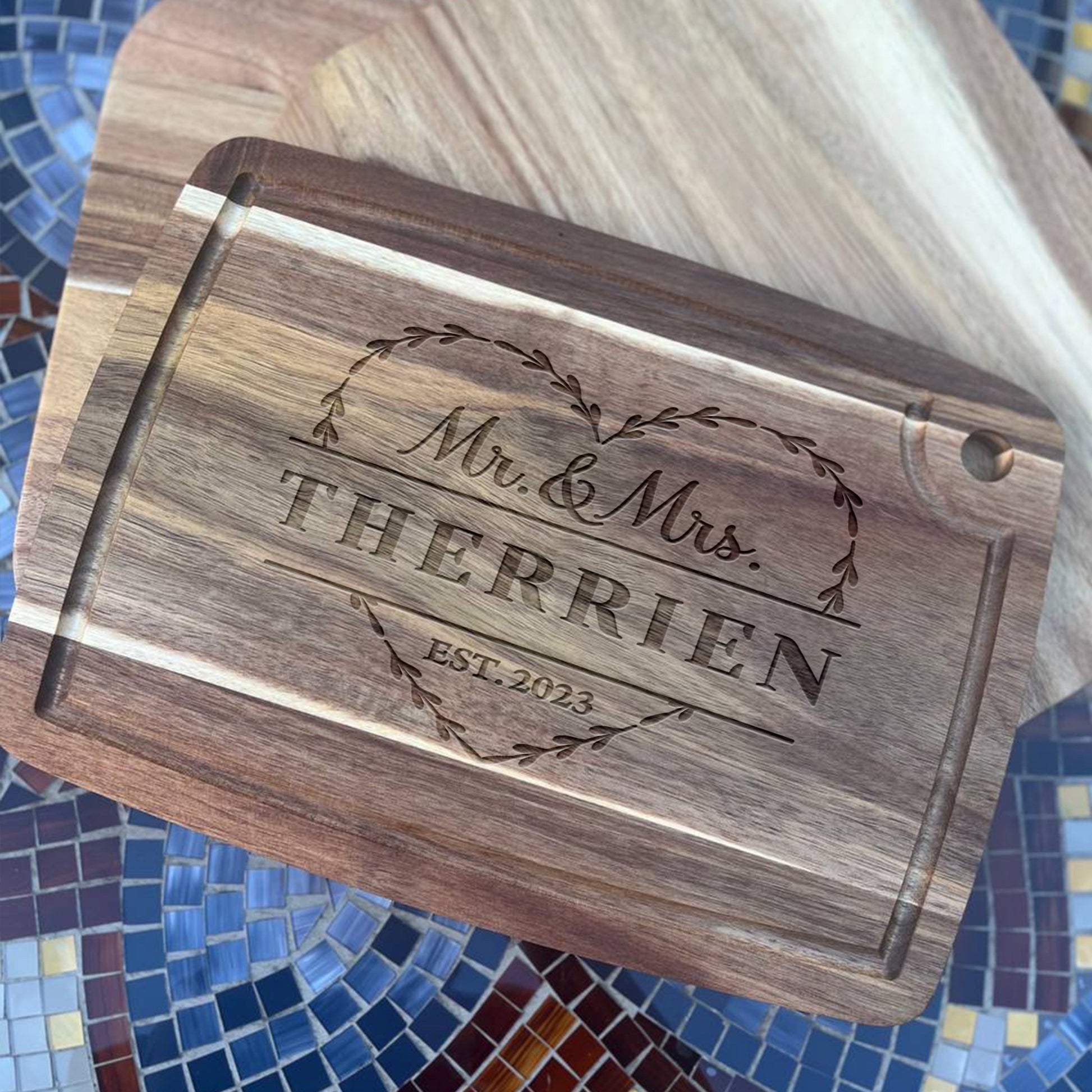 - Our cutting boards are engraved on one side permitting the use of the other side for cutting and chopping.