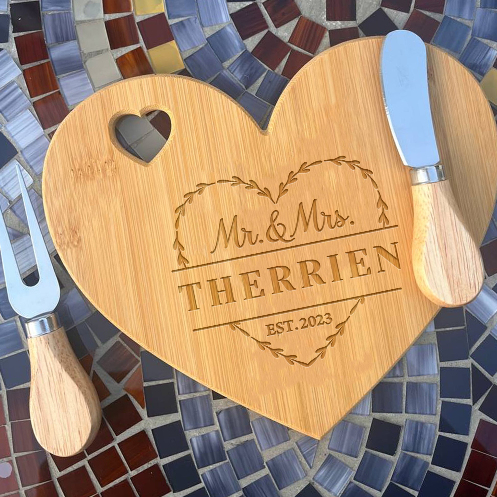 Heart shaped Personalized Charcuterie Board, Wedding Custom Cutting Board, Couple Cutting Board, Personalized Wedding Gift, Custom Cheese Board, Gift for Couples